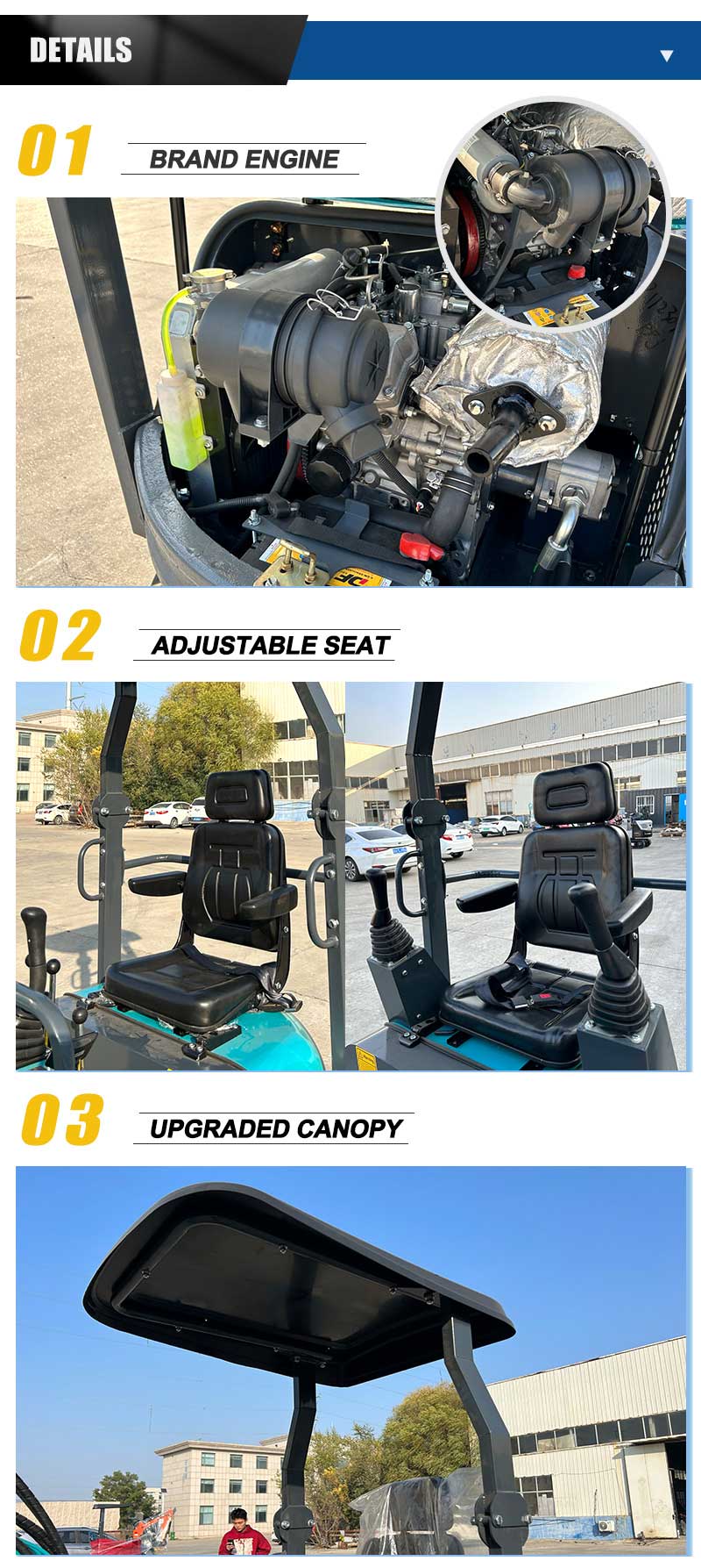 Silnik wysokoprężny Kubota / Precyzyjny zawór wielodrogowy / Silnik Eaton / Pompa hydrauliczna Shimadzu / Cylinder importowany, rura z wbudowanym pierścieniem uszczelniającym NOK / Regulowane ostrze / Odporna na zużycie gumowa gąsienica / Regulowane siedzenie kierowcy / Łyżka standardowa / Półka / Elektroniczna przepustnica / Elektroniczny wyświetlacz cyfrowy / Centrum sterowania ECU. Podejmij działania już teraz, skontaktuj się z nami