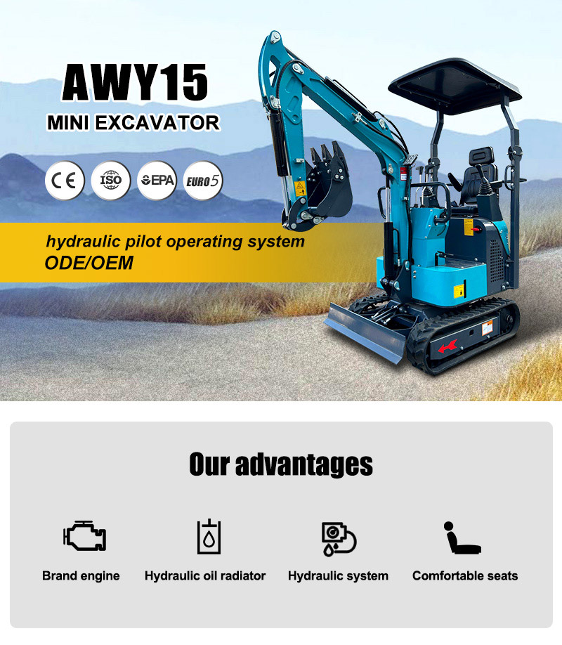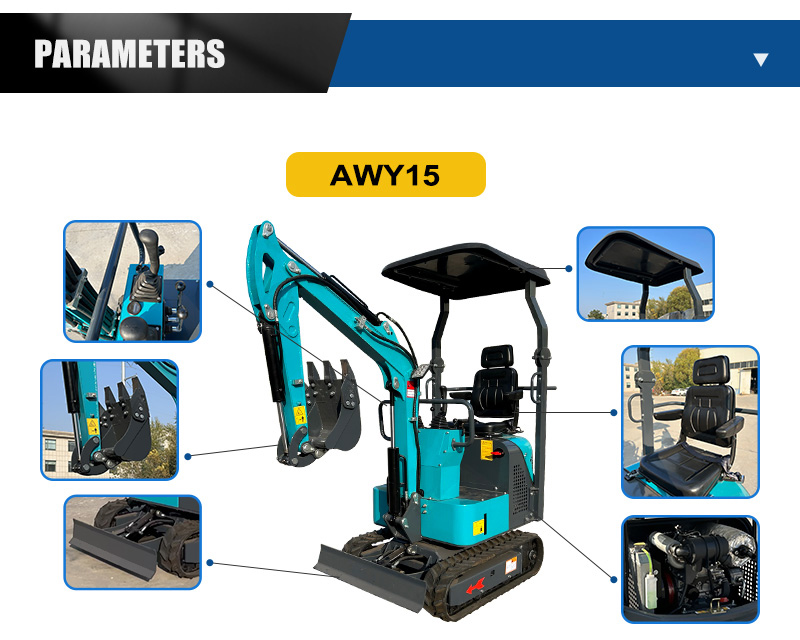 AWY15, minikoparka gąsienicowa hydrauliczna 1,5 t, kompaktowa i elastyczna, mocna, o niskim zużyciu paliwa i niskiej cenie.