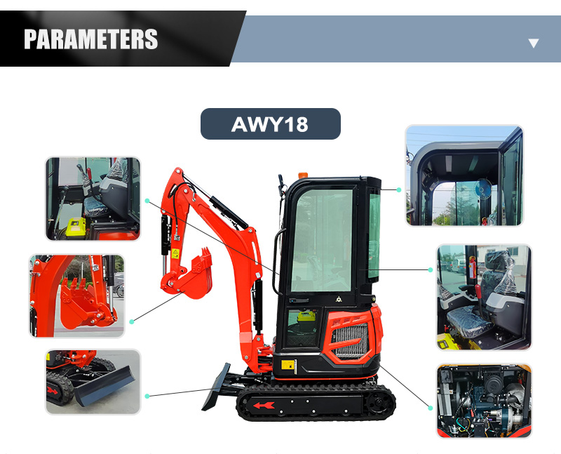 Minikoparka Aiweiya Minibagger z silnikiem wysokoprężnym o udźwigu 1,8 tony