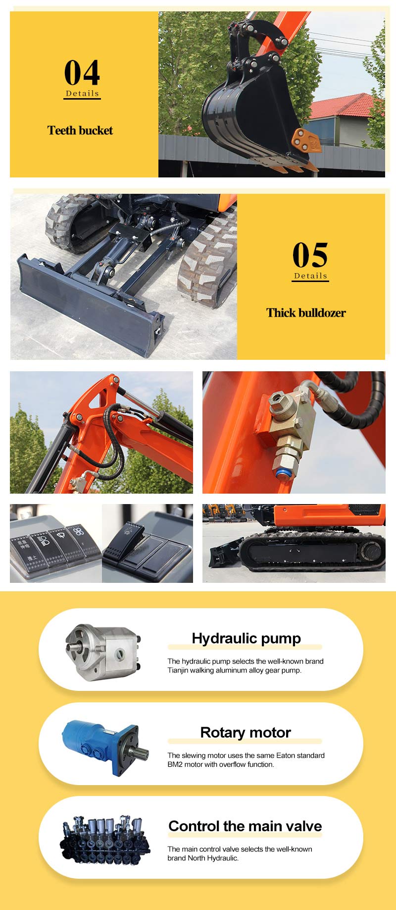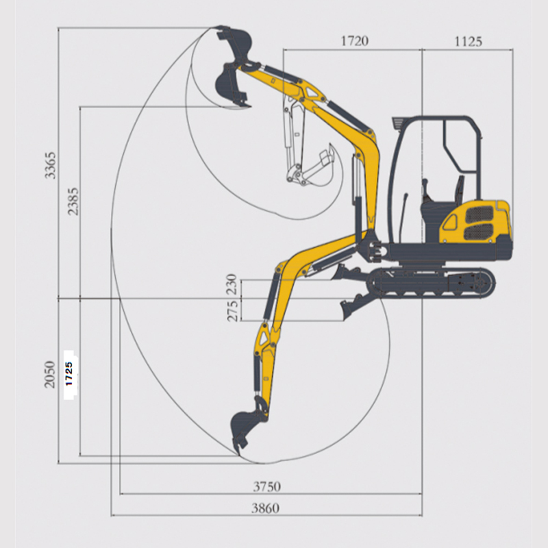 AWY18+Minikoparka Koparka 1,8 tony. Mała koparka ma zalety niewielkich rozmiarów, elastyczności i elastyczności, co doskonale nadaje się do różnych wykopów pod rurociągi miejskie, budowy infrastruktury, obiektów użyteczności publicznej i prac konserwacyjnych w budynkach mieszkalnych, a także ma zalety niskiej ceny, szybkiego zwrotu kosztów, lekkości, wygody konserwacji i dokładnej kontroli. Nowo zmodernizowany dwucylindrowy, chłodzony wodą silnik typu V, trzecia klasa wyładowcza, chłodzony wodą, podwójne chłodzenie chłodzone olejem hydraulicznym, pierwsza koparka sterowana mikrokomputerem, części konstrukcyjne wykonane są ze stali nierdzewnej lub tworzywa sztucznego, rozszerzając usługę życie. Humanizowana konstrukcja, rama, elektroniczna przepustnica i inna wygodna obsługa. Elektroniczny wyświetlacz cyfrowy, automatyczny alarm sterowany mikrokomputerem, dzięki czemu klienci po raz pierwszy mogą znaleźć usterkę, terminową konserwację, sterowanie komputerem ECU, lepsze odprowadzanie ciepła, wyższą wydajność.